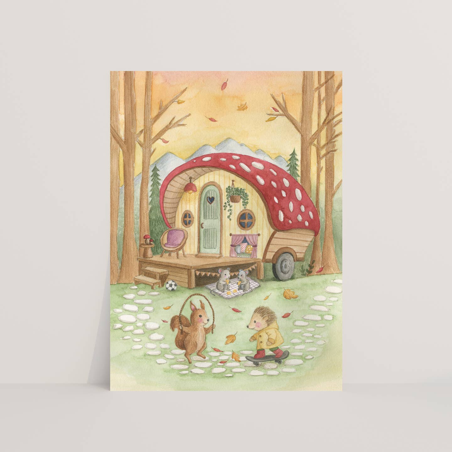 Een vrolijke kaart met een speelse illustratie van buitenspelen. Perfect om iemand zomaar een groet te sturen, voor een verjaardag of gewoon omdat je aan iemand denkt.