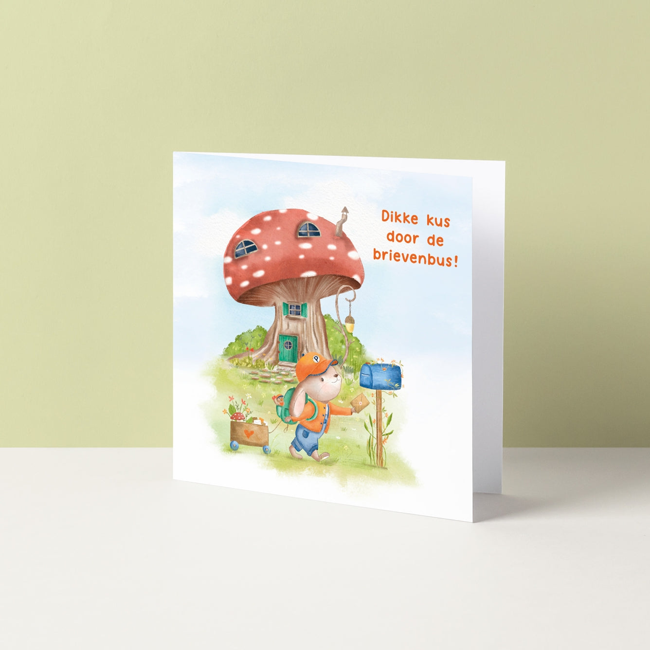 Dit postbode konijntje brengt heel veel liefs door de brievenbus, van dit kaartje word je vanzelf wel blij!